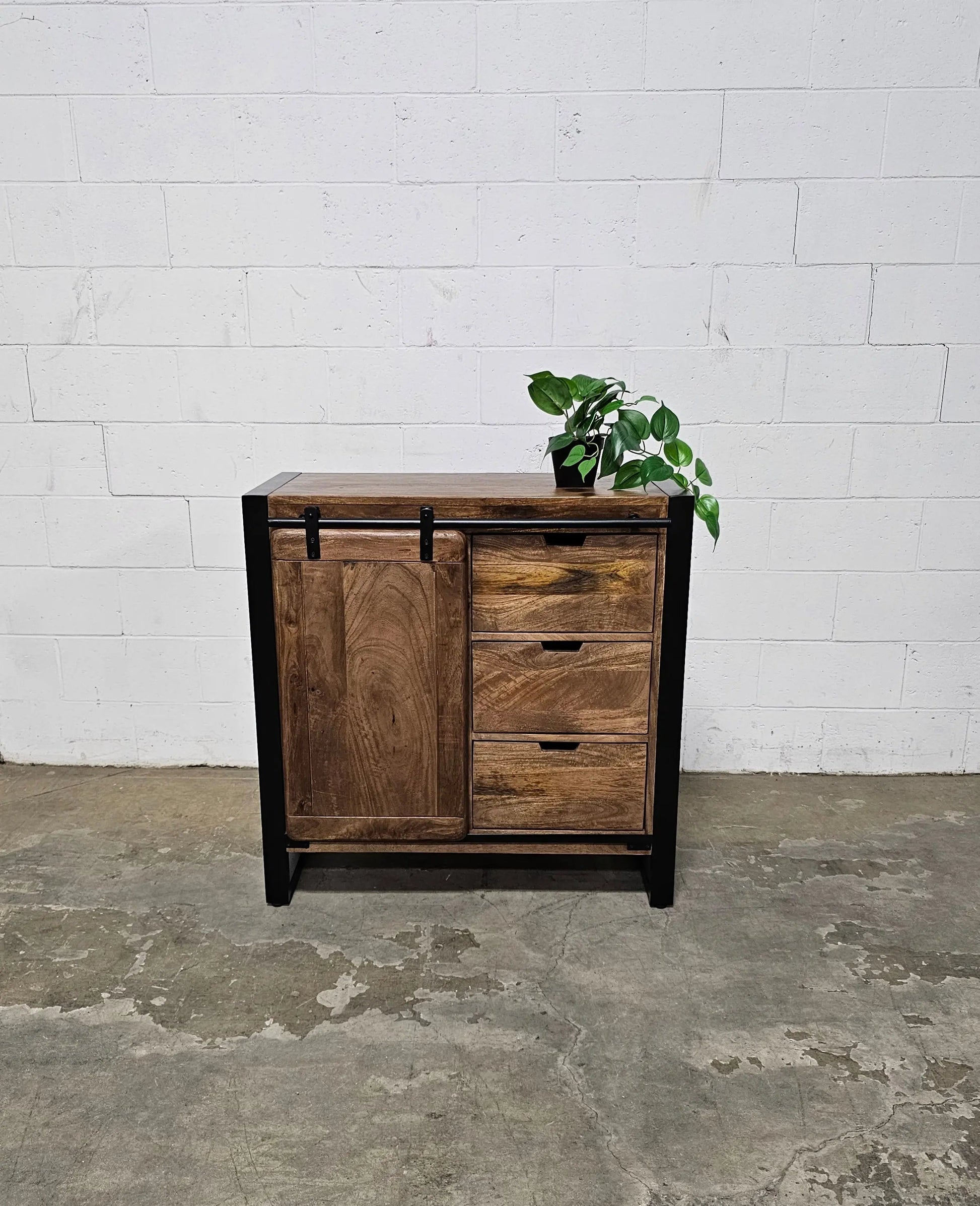 Meuble Commode Avila : Rangement en Manguier avec Porte Coulissante