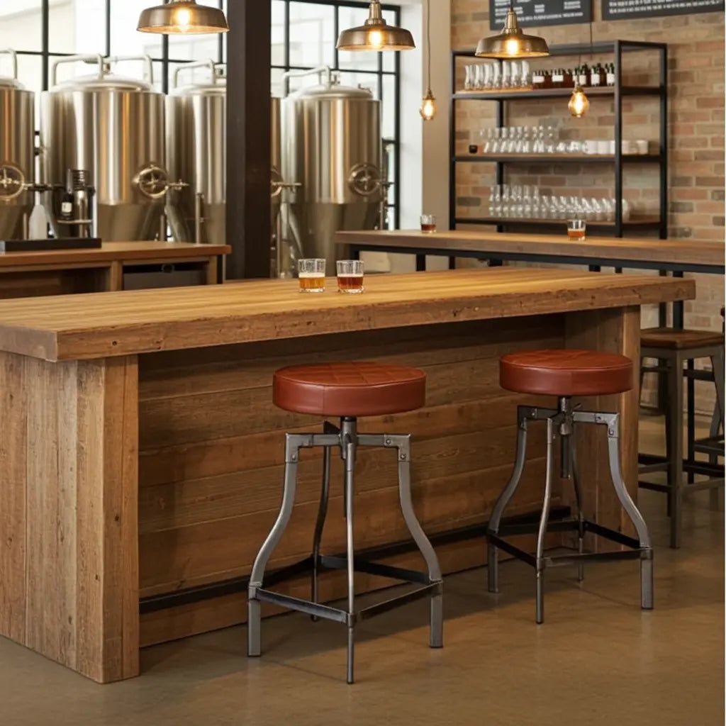 Tabouret de comptoir en cuir ajustable base d'acier noir ou brut