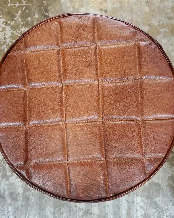 Tabouret en cuir ajustable base (2 versions : noir ou brut)